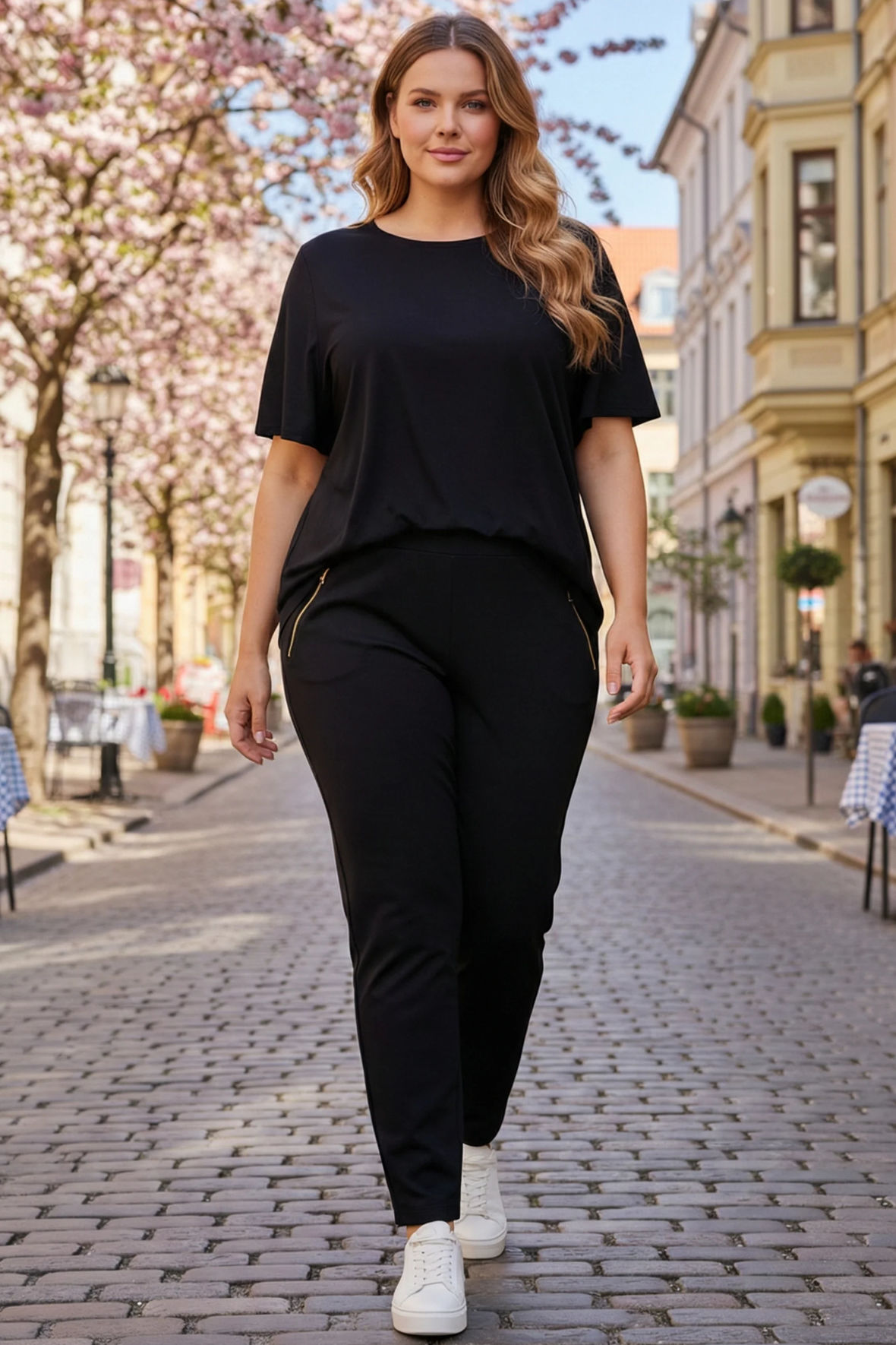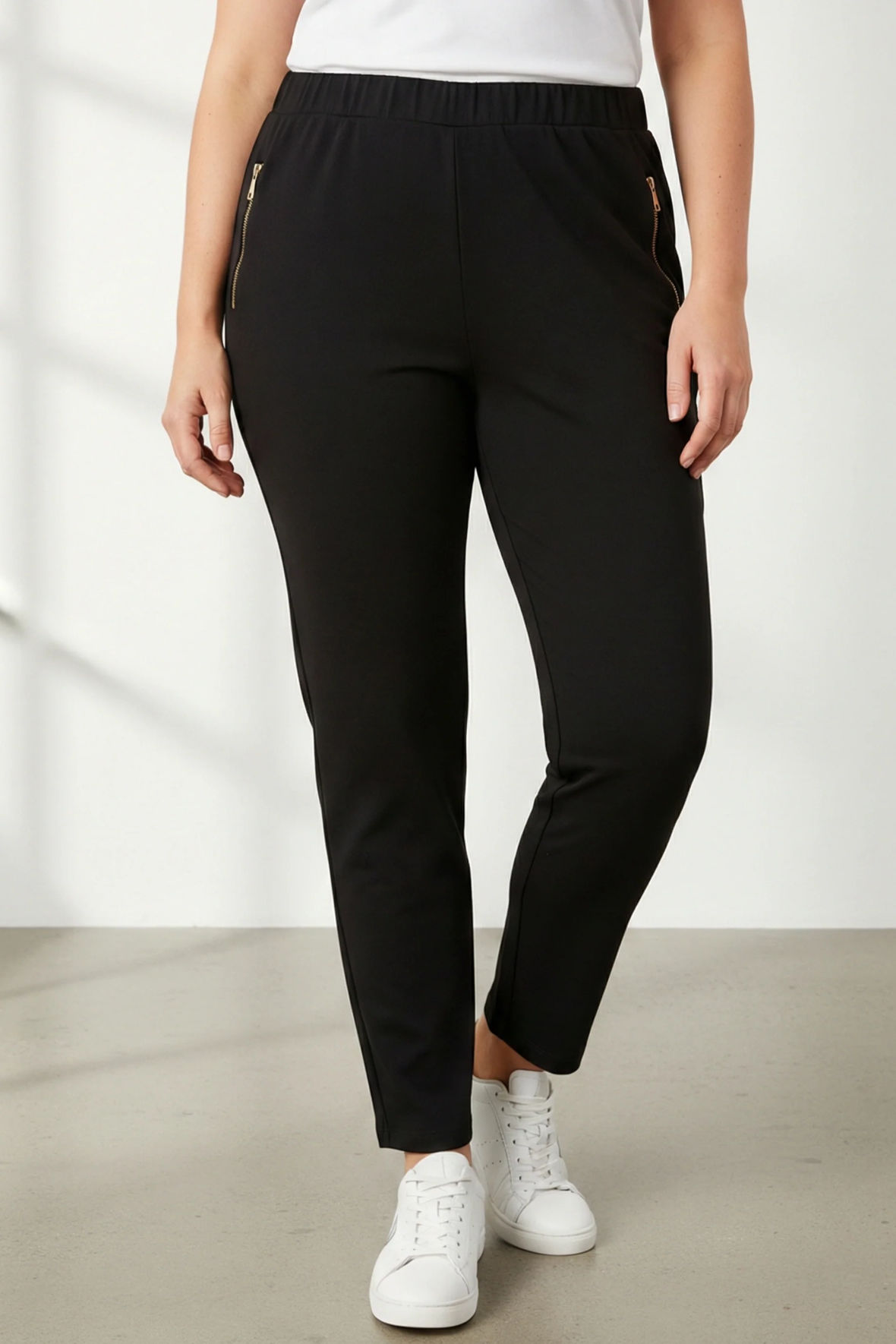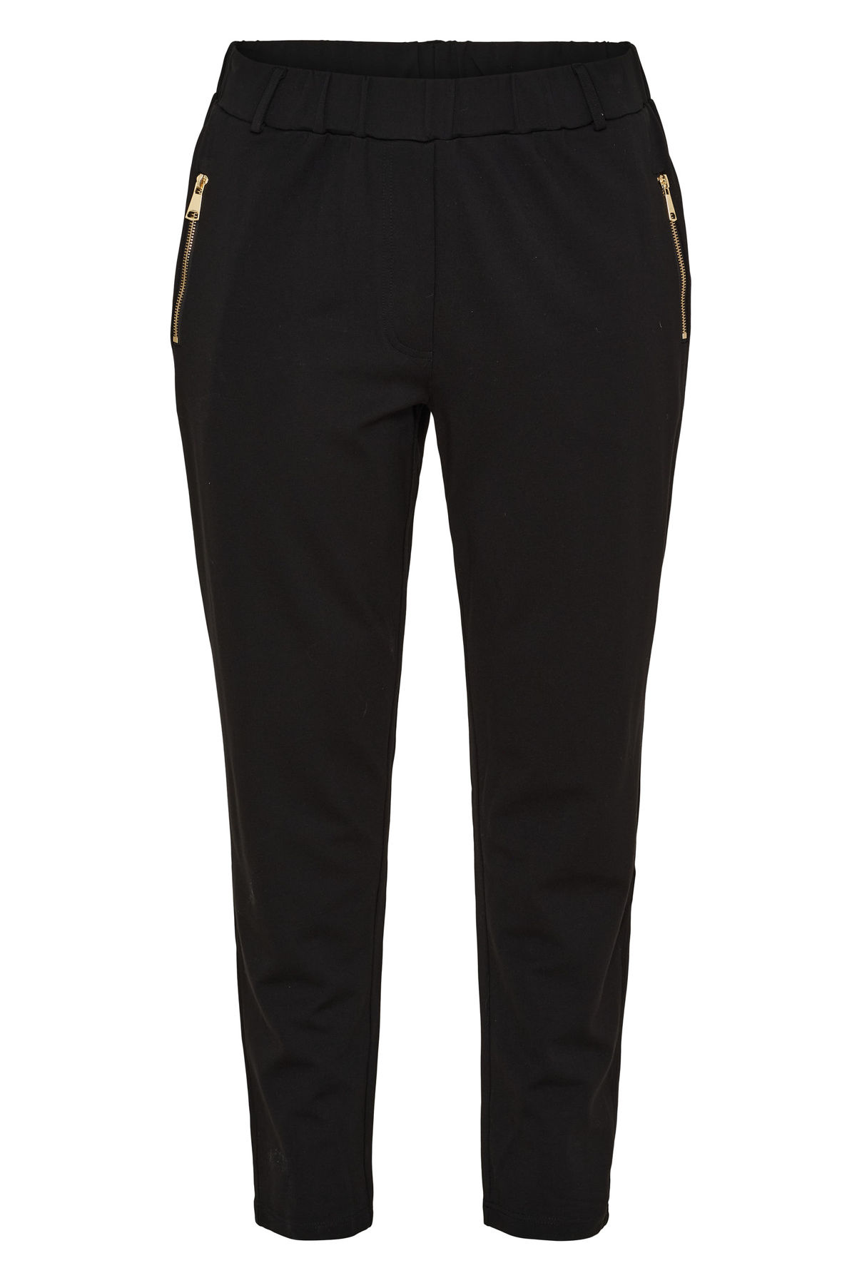 Pænere klassisk elegant buks med guldfarvet lynlås lommer. En buks lavet i Jersey kvalitet der strækker sig, som er åndbar og til med er krølfri. Med bred elastisk linning som giver god støtte. Den har bæltestropper der nok mest er til pynt på den her model. Baglommer er paspoleret til pynt, ligesom gylpen er. En fed buks der er så funktionel og behagelig samtidig med at den er pæn. Så brug den dagen igennem og skal du ud klarer den også det, smart og nemt. Regulær pasform.
