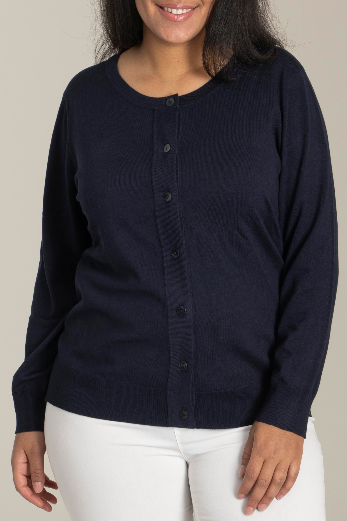 Så faldt du lige i fælden, det er nemlig en helt lige ud ad landevejen strik cardigan - ved første øjekast. MEN der er altså kælet for den. Helsinki Cardigan som den hedder er lavet som en finstrik med fokus på ribstrik detaljer, ekstra bred kant ved den runde hals og smuk ekstra bred knapstolpe der er gennemgående med flotte knapper i perlemorslook. Ribkant forneden er også ekstra høj og det samme gør sig gældende ved manchetter på de lange ærmer. Sandgaard har flot gradueret den i størrelsen så ærmegab mv følger størrelsen. Den krøller ikke, holder farven samt er kuffert venlig.