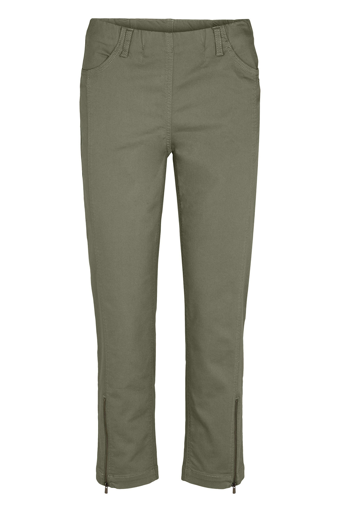 Laurie Piper Cropped regular i farven khaki samt i twill kvalitet, og altså med en kortere benlængde slutter midt læg, med lille slids i siden og lynlås. Med ekstra syning fra lomme og ned ad ben til slids, en smart detalje der giver en flottere silhouette. Et par bukser der er der har flad bred elastik i livet samt er med bæltestropper, de er lavet uden knap, gylp og lynlås så de sidder dejligt på kroppen - frihed uden gener kunne man fristes til at sige. Med tone i tone stikninger. Let bomuldskvalitet med stræk - en rar oplevelse mod huden. De har for- og baglommer, og nu vi er ved bagen har den fået lodrette indsnit der får den til at sidde så flot. En buks fremstillet uden skadelige kemikalier, indeholder økologisk bomuld samt er Øko-Tex certificeret og produceret i Europa. Samme pasform hver gang også plus size. Indtil der bliver taget billeder af den på model, må du nøjes med dem af den lyse.