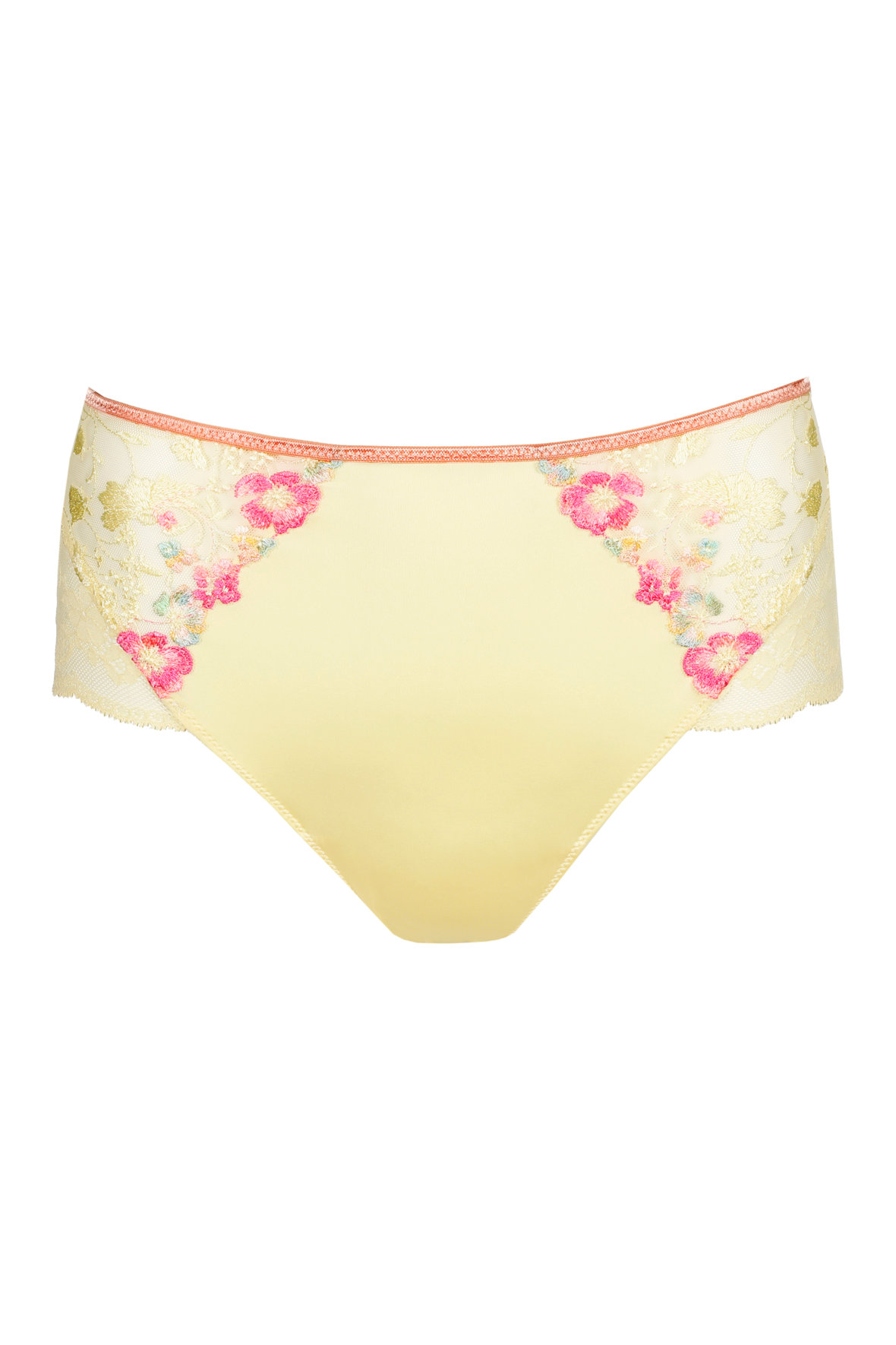 Lizelot serien rummer selvfølgelig også den ret så populær maxi trusse. Den fortsætter den vilde tematik fra bh'erne med et delikat mix at sommer gul og farvede blomster som pink der spiller op. Forstykke i heldækkende microfiber med smuk transparent hofte der fortsætter om på numsen. Forførende og feminin sådan som det skal være. Maxi snittet byder på høj talje, bred over siden og relativt lave benskæringer.