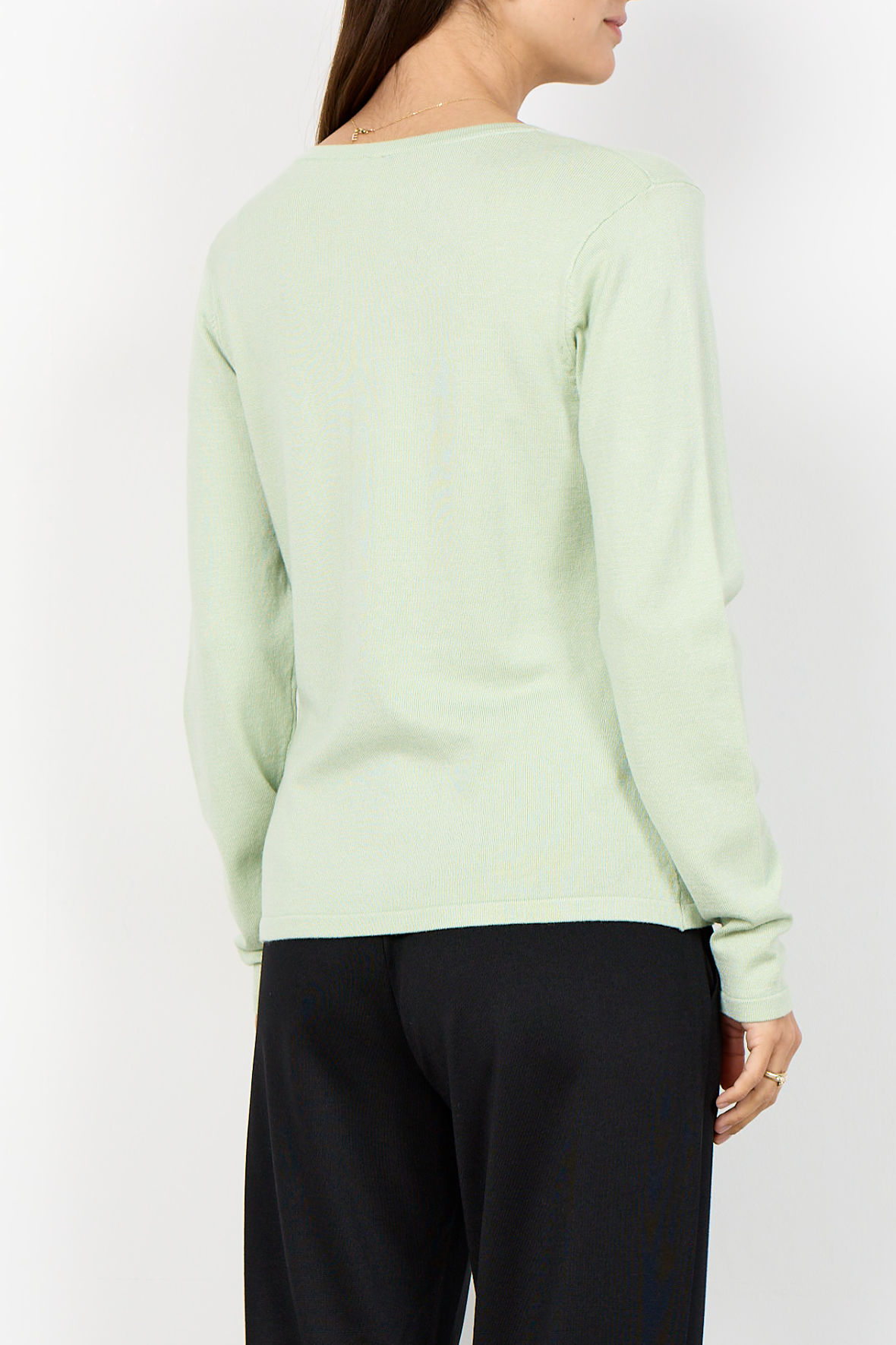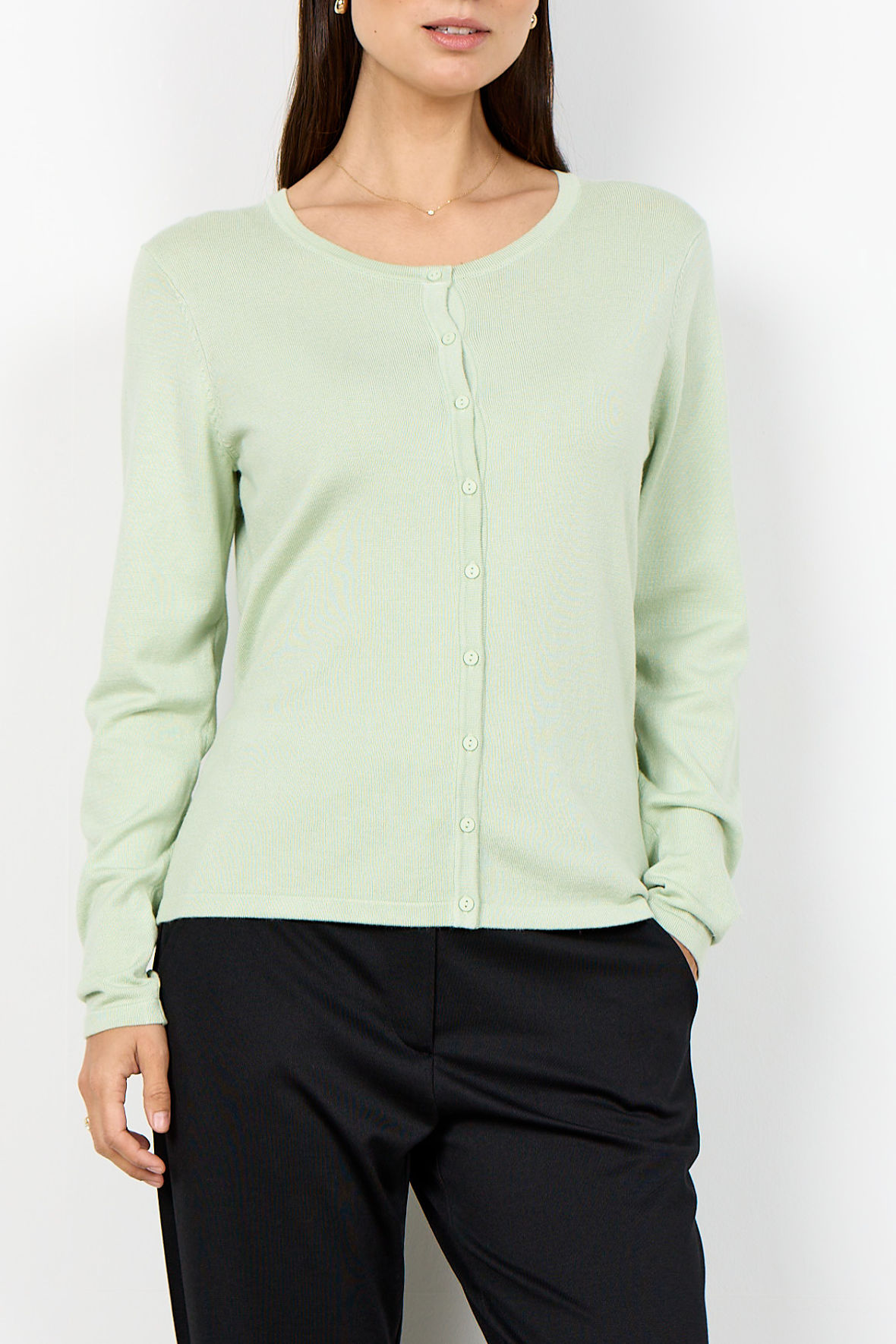 En dejlig basis cardigan fra SoyaConcept, med diskret ribstrik på alle kanter. SC-Dollie 446 har lange ærmer, rund halsudskæring og knap stolpe hele vejen ned. Rigtig god kvalitet lavet i finstrik, så er den god til lag på lag løsninger da den ikke bliver for tyk. Den holder også farve, facon samt er kuffert venlig. En strik du kan bruge året rundt. Snittet er lidt mere tæt.