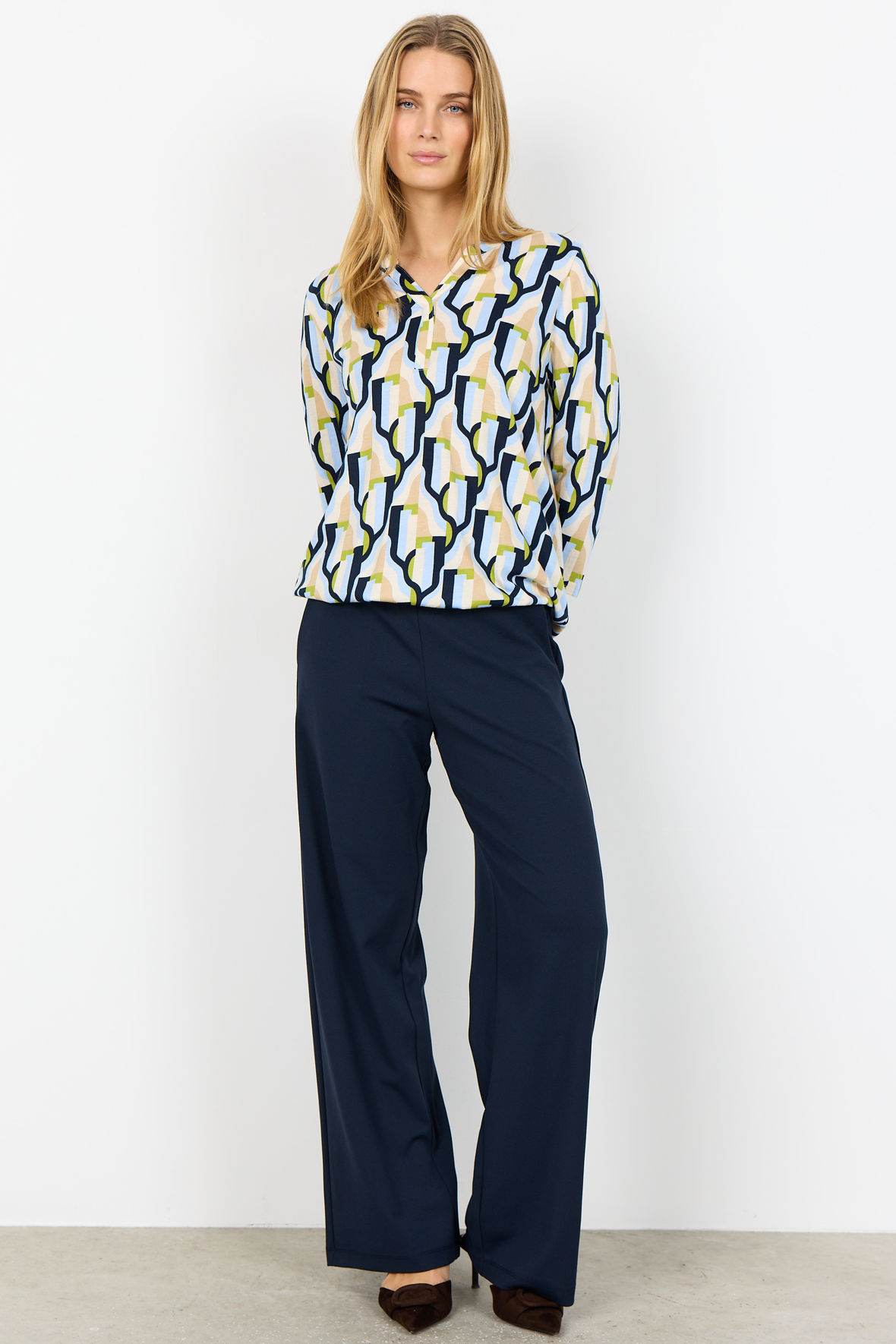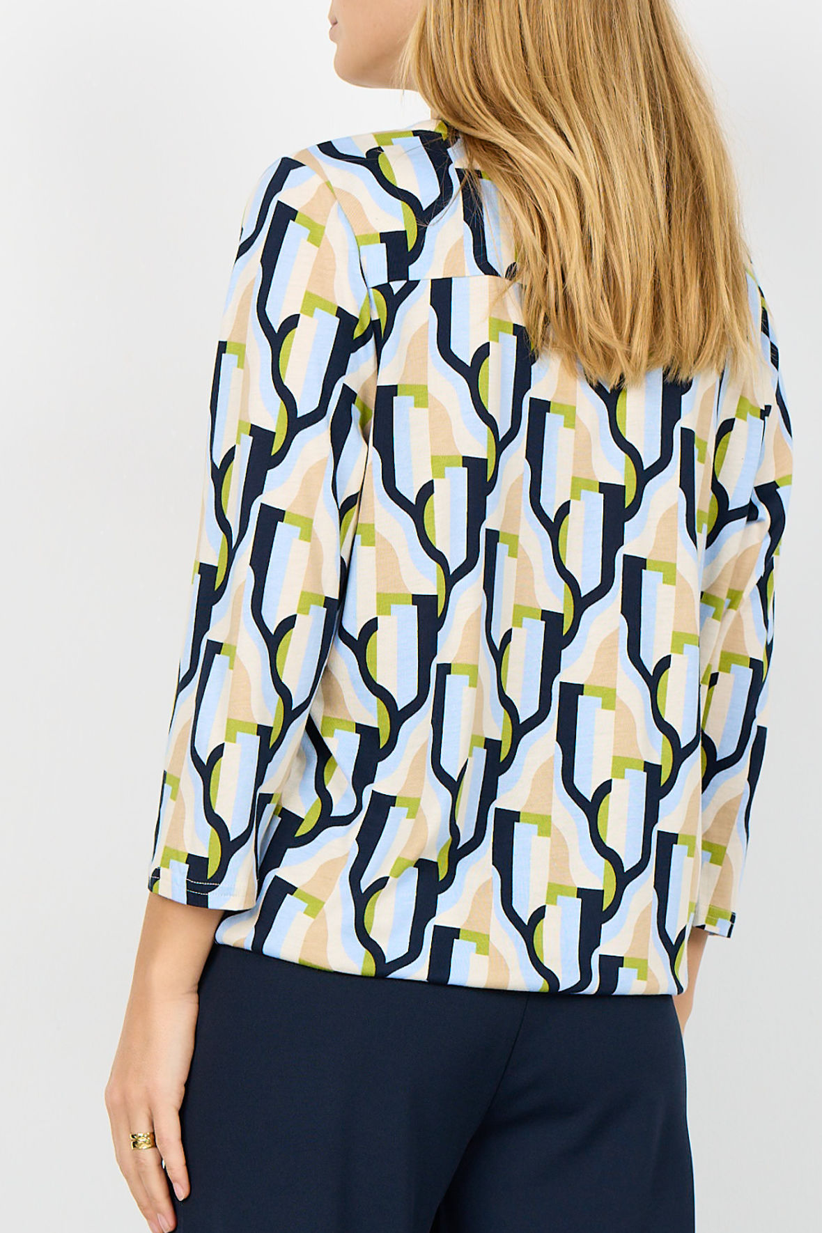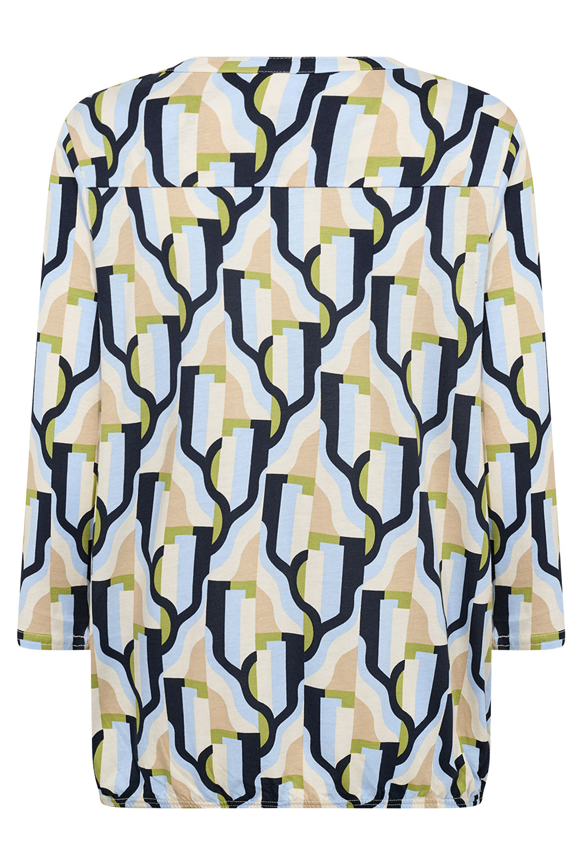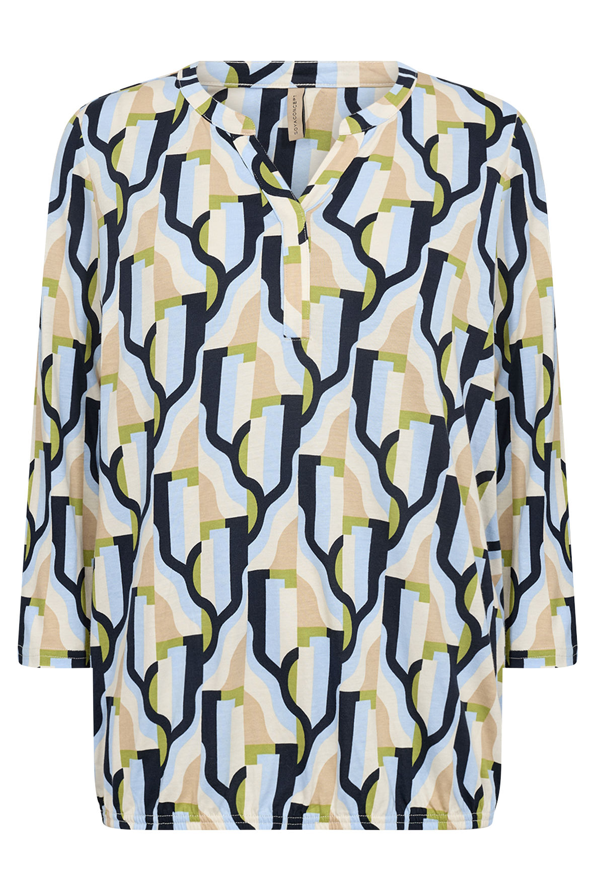Sc-Felicity AOP 534 bluse er fremstillet af 50% økologisk bomuld og 50% viskose og i den helt vanlige Felicity kvalitet der er lækker og let. Den har en rund halsudskæring med åben V-slids, et abstrakt (og hvis jeg selv skal sige virkeligt flot og friskt) print. Ærmer er i 3/4 længde og giver den et sporty fint udtryk der harmonerer rigtig godt med at den også har elastik ved hofter.