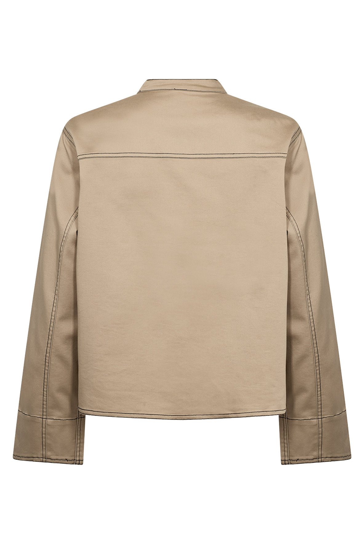 En helt let kort oversized jakke uden foring og mellemforing. Sc-Akila er en sommerlig jakke der bare lige skal tage det sidste af aftenkulden, eller dække de bare arme når det i løbet af sommeren bliver for køligt. Den er lavet med mandarin krave og flotte knapper der samme farvespil som de kontrastfyldte stikninger der tegner de rene linjer. Lommerne er påsatte. Den er udstyret med lille slids nederst i siden.