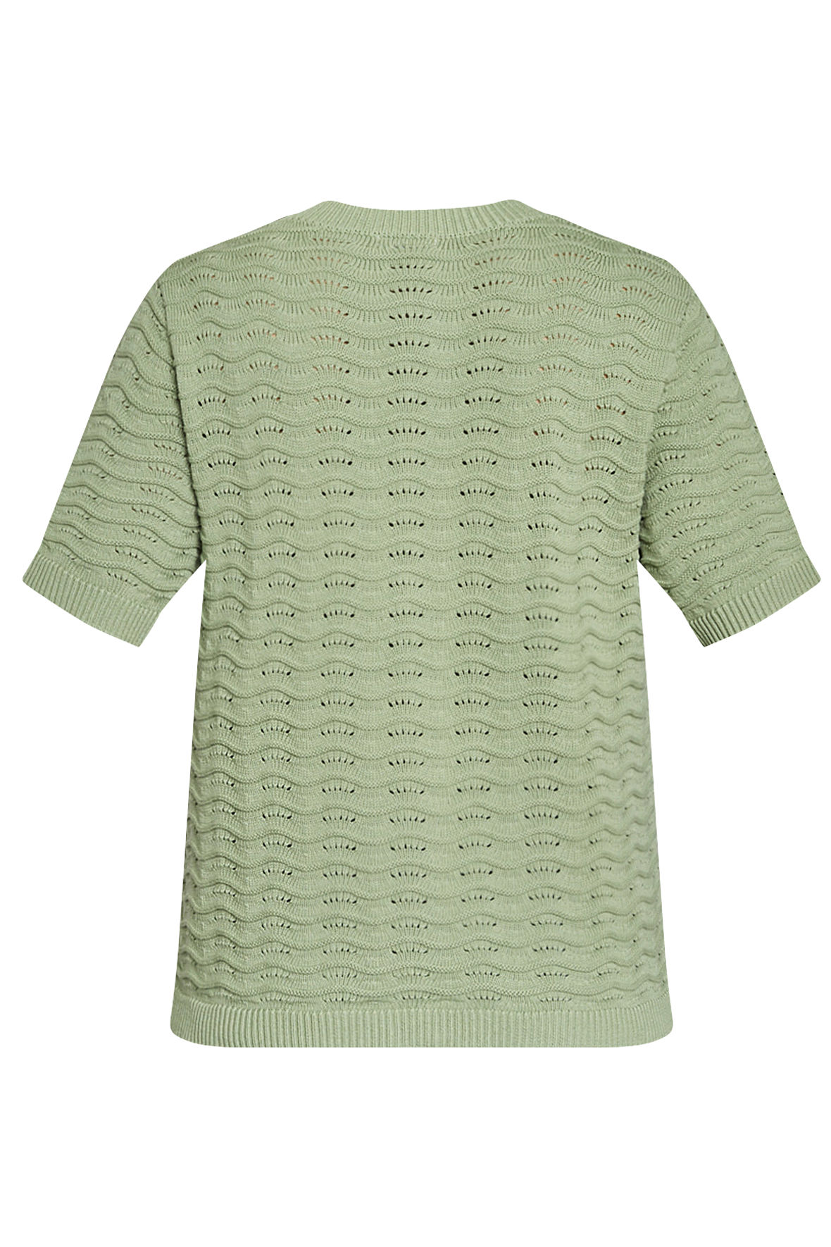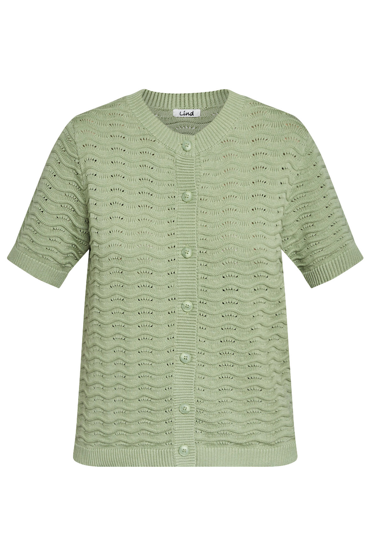 LiBrenda er den hulstrikkede cardiganstrik fra Lind har et let struktureret flot mønster, der giver modellen et blødt indbydende udtryk og look. Den er strikket i ren bomuld og har en behagelig, åndbar kvalitet, som gør den ideel til hverdagsbrug. Den diskrete struktur i strikken tilfører dybde, mens den klassiske pasform holder udtrykket enkelt og harmonisk. Ærmerne er korte og har ribstrikkant, en kant der i øvrigt går igen.