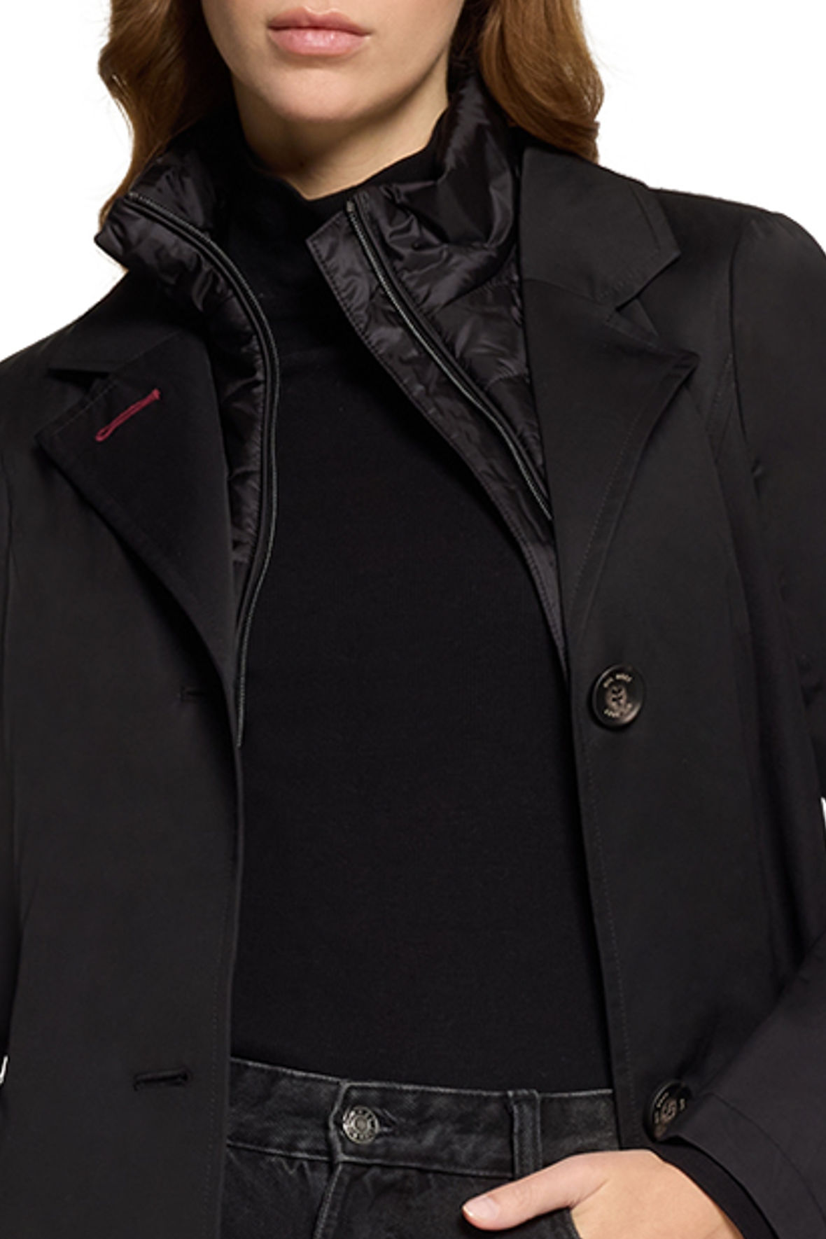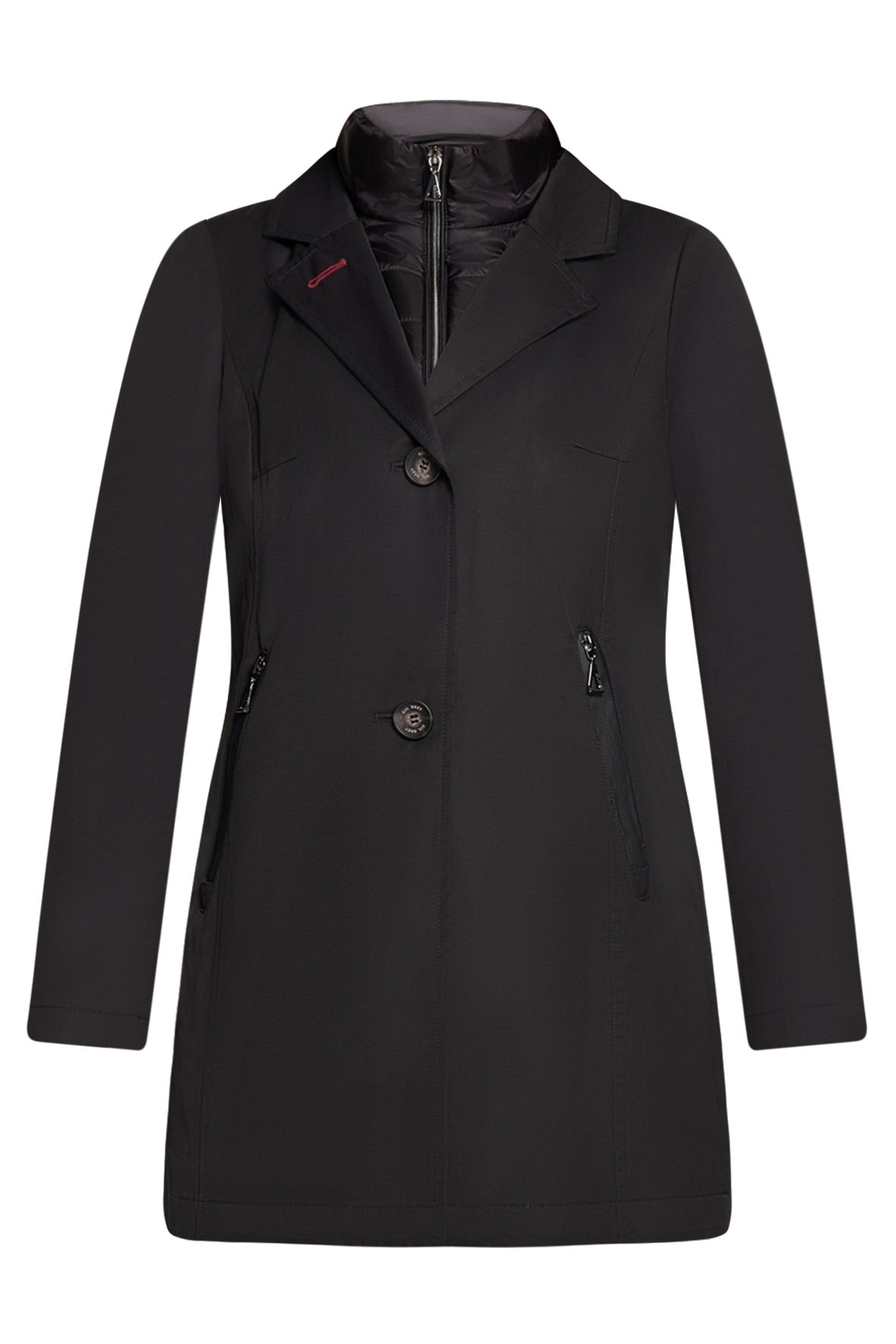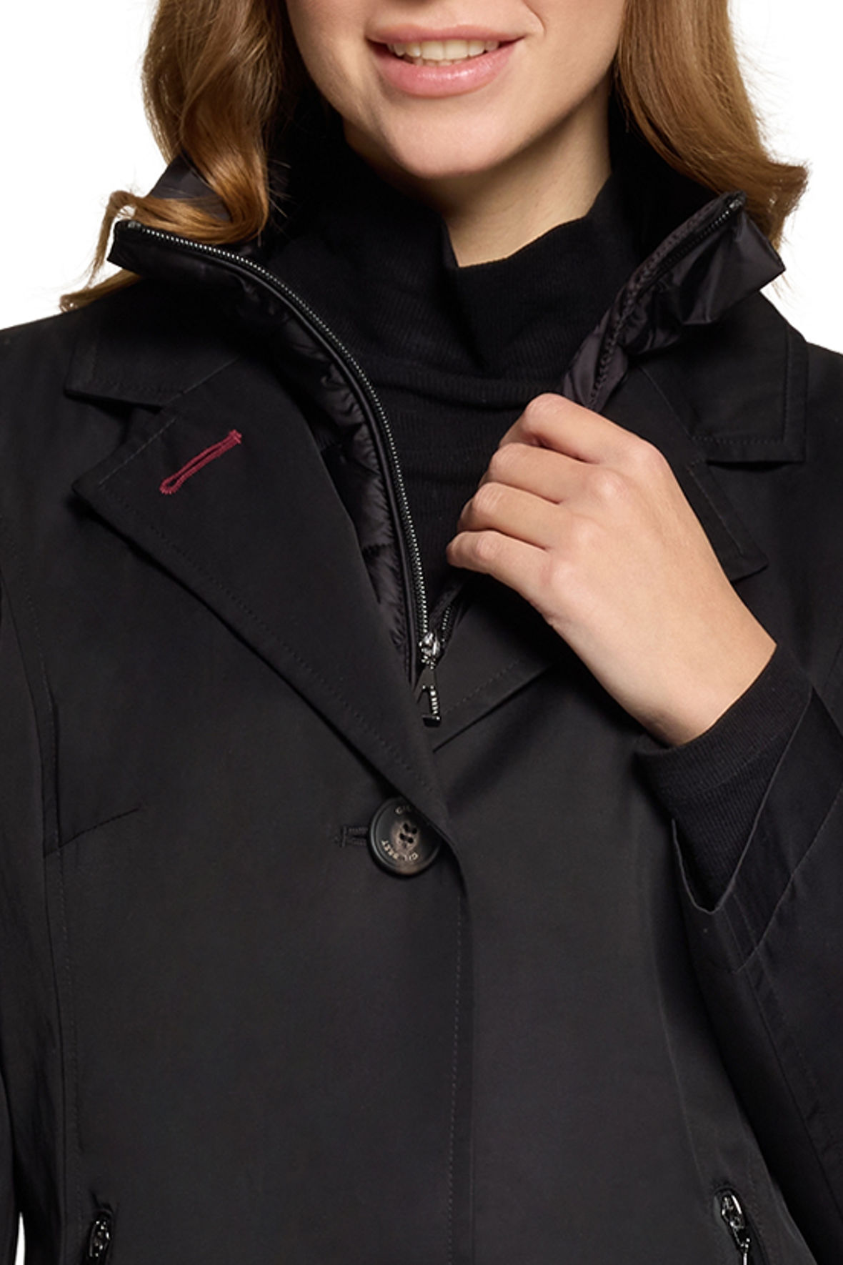 Gil Bret søstermærket til Betty Barclay, super høj kvalitet og et snit tilpasset os i norden. Tæt spækket med detaljer og tanker der er tænkt til enden. Her er det en jakke du kan bruge fra forår over sommeren til efteråret. Den er nemlig ustryret med krave- og bryststykke (der kan lynes ud og sættes i efter behov) i thermofleece der er pakket ind i quilt, som altså lynes foran med tovejslynlås. Det er let, varmeisolerende, vandafvisende, åndbart og tørrer hurtigt, vinden kommer du heller ikke til at slås med. Den er lavet ret så lækker med et design der blander det funktionelle som tapede syninger og lommer, med trenchcoat look med knapper og revers med quiltjakkens verden. Ryggen er glat med slids nederst. Målgruppen er den aktive kvinde der værdsætter det klassiske, og som ikke vil gå på kompromis med innovative løsninger. En jakke der kan følge dig til fest, teater, du kan cykle med, have på i bilen og det vil ingen ende tage. Den er størrelsessvarende.