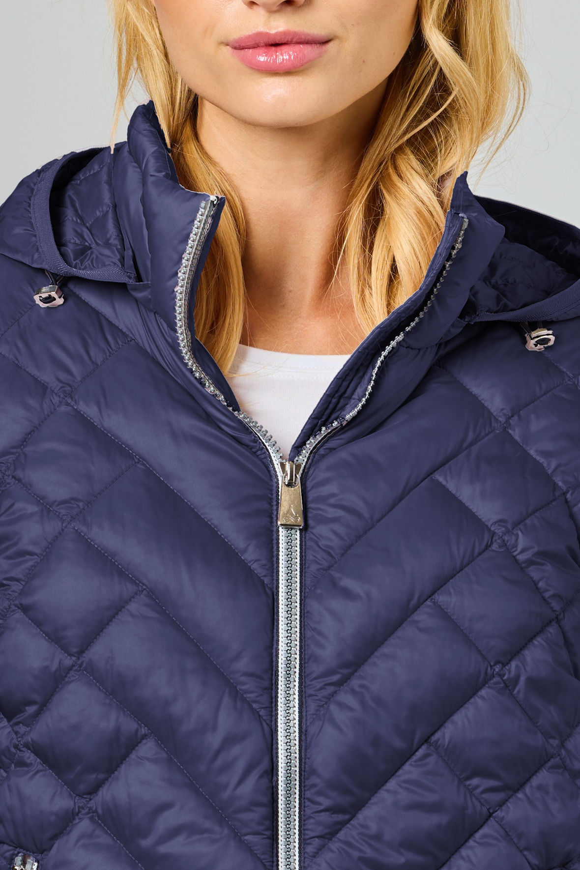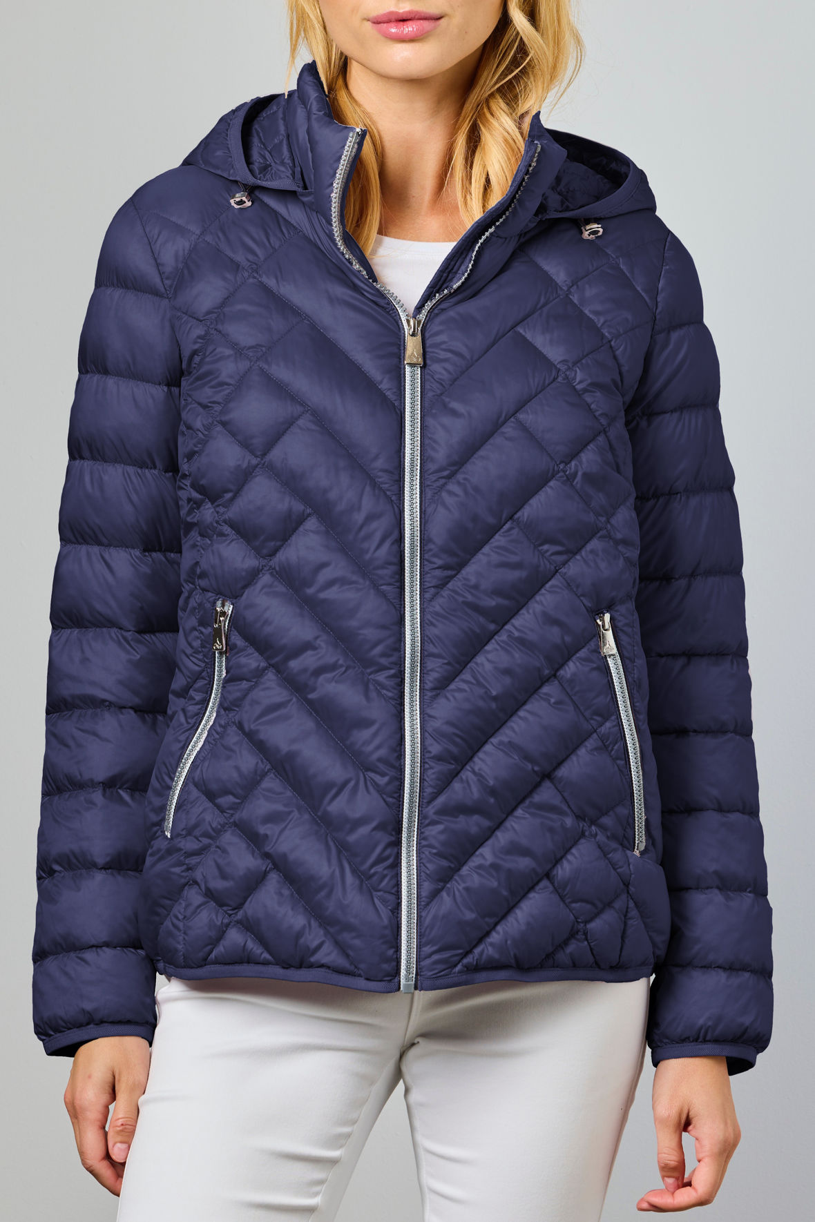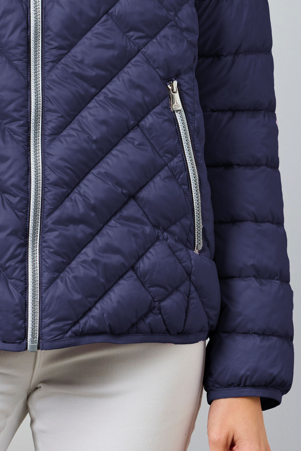 Naja jakken er en let, vatteret quilt overgangsjakke designet til forår og efterår, og særligt god hvis du er lidt kuldskær i sommermånederne. Fyldt med blød kunstig Sorona®-isolering, som føles som let dun, giver den varme uden at fylde og er åndbar – perfekt til lag-på-lag-styling i skiftende vejr. Det diagonale let skinnende quiltede mønster giver Naja et moderne design til det enkle snit, mens fine detaljer som denim-look bånd ved lynlåse foran og på lommerne giver et diskret, stilfuldt præg. Hætten kan tages af for alsidig styling, og elastisk kantbånd ved ærmer, bund og hætte sikrer en behagelig og tæt pasform. Hætten er også justerbar. Uanset om du er på farten eller ude på en afslappet gåtur, kombinerer Naja jakken let funktionalitet med et moderne, rent udtryk og er serveret på en sporty facon. Pasformen er den populære Modern Fit der er lige midt i mellem tætsiddende og løs, der giver en flot figur. Som altid med Junge, kvalitet der holder og et look man holder af.