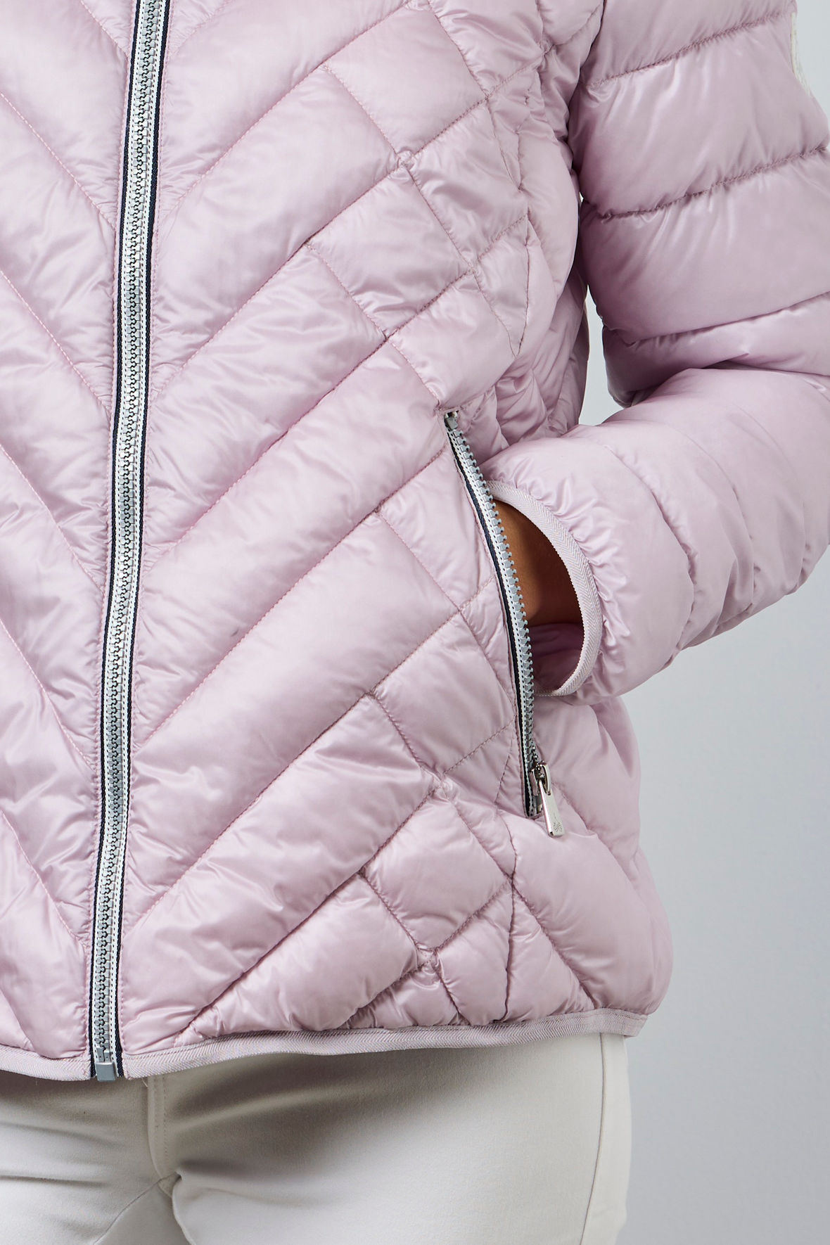 Naja jakken er en let, vatteret quilt overgangsjakke designet til forår og efterår, og særligt god hvis du er lidt kuldskær i sommermånederne. Fyldt med blød kunstig Sorona®-isolering, som føles som let dun, giver den varme uden at fylde og er åndbar – perfekt til lag-på-lag-styling i skiftende vejr. Det diagonale let skinnende quiltede mønster giver Naja et moderne design til det enkle snit, mens fine detaljer som denim-look bånd ved lynlåse foran og på lommerne giver et diskret, stilfuldt præg. Hætten kan tages af for alsidig styling, og elastisk kantbånd ved ærmer, bund og hætte sikrer en behagelig og tæt pasform. Hætten er også justerbar. Uanset om du er på farten eller ude på en afslappet gåtur, kombinerer Naja jakken let funktionalitet med et moderne, rent udtryk og er serveret på en sporty facon. Pasformen er den populære Modern Fit der er lige midt i mellem tætsiddende og løs, der giver en flot figur. Som altid med Junge, kvalitet der holder og et look man holder af.