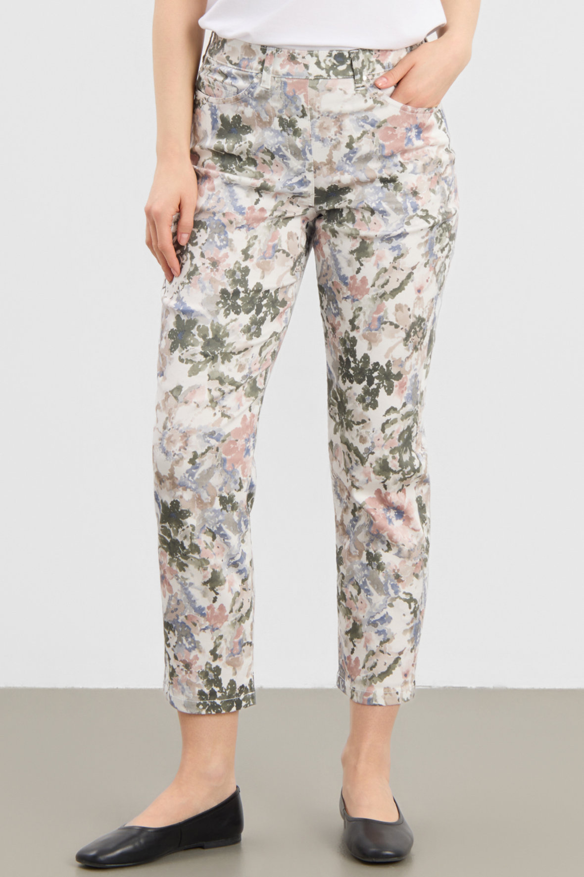 LAURIE værdsætter vi de tidløse klassikere, og Hannah er bestemt ingen undtagelse. Hannah Regular bukserne har en ekstra kort benlængde og en Regular pasform, der skaber et elegant, men afslappet udtryk med god numse garanti. Pasformen former let benene uden at sidde stramt og faktisk er kvaliteten helt let og strækbar. Bukserne har bred flad elastisk linning, praktiske lommer for og bag, og bæltestropper, som giver mulighed for at sætte dit eget præg på looket. Der er ingen gylp eller lynlås hvorfor der heller er noget unødigt der buler ud under en tæt top. Den korte benlængde gør Hannah særligt velegnede som bukser til lave kvinder, der ønsker en flatterende og passende længde. Har du afluret hvor inspirationen til printet kommer fra, vi er naturligvis i vandfarver med overvejende khaki tema. Et styling tip kunne være at har du print forneden så fang en af prikfarverne, det kan godt være den der er mindst af, og tag den på som ensfarvet top, så kommer der en dejlig rolig ballance.