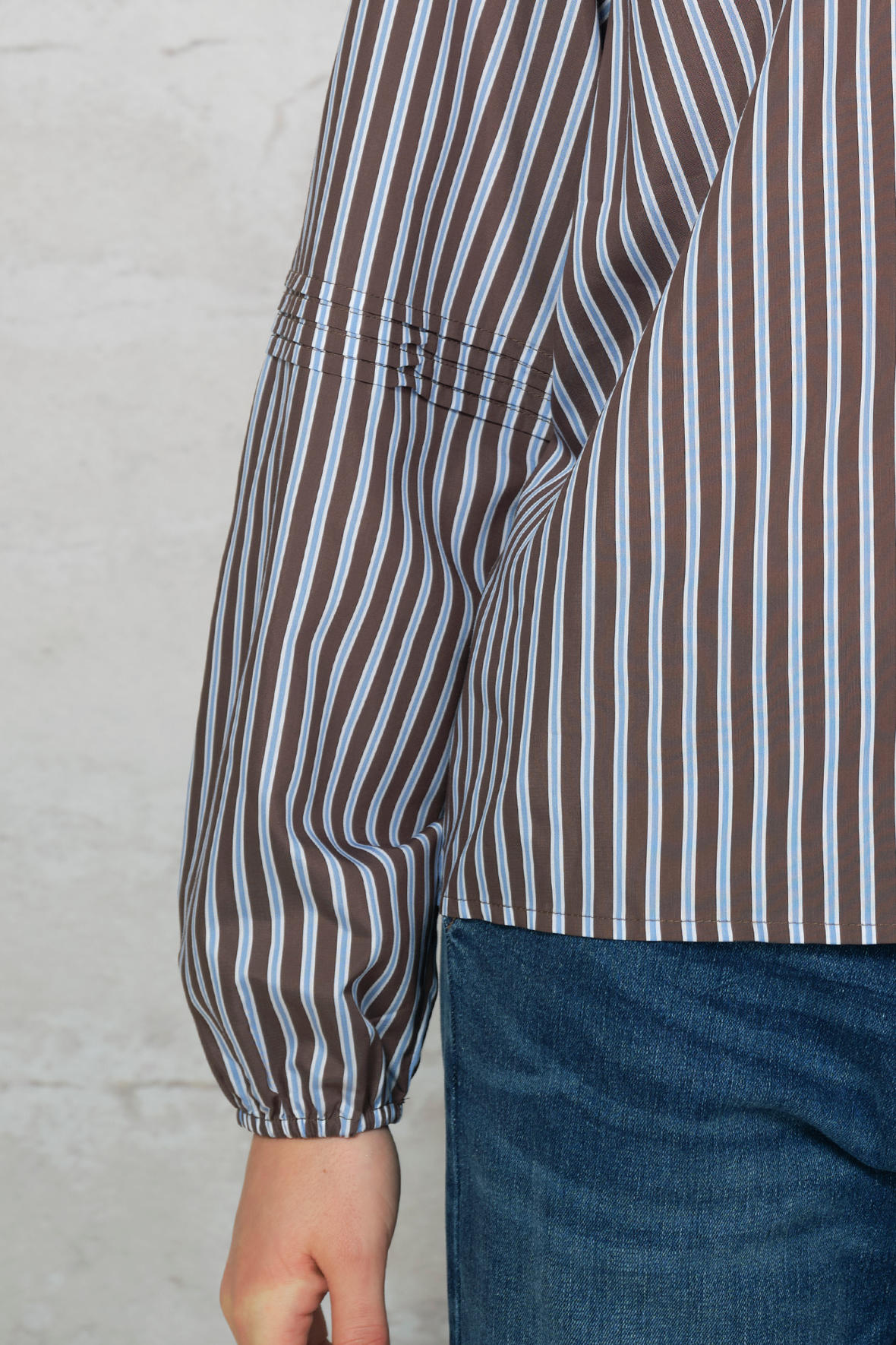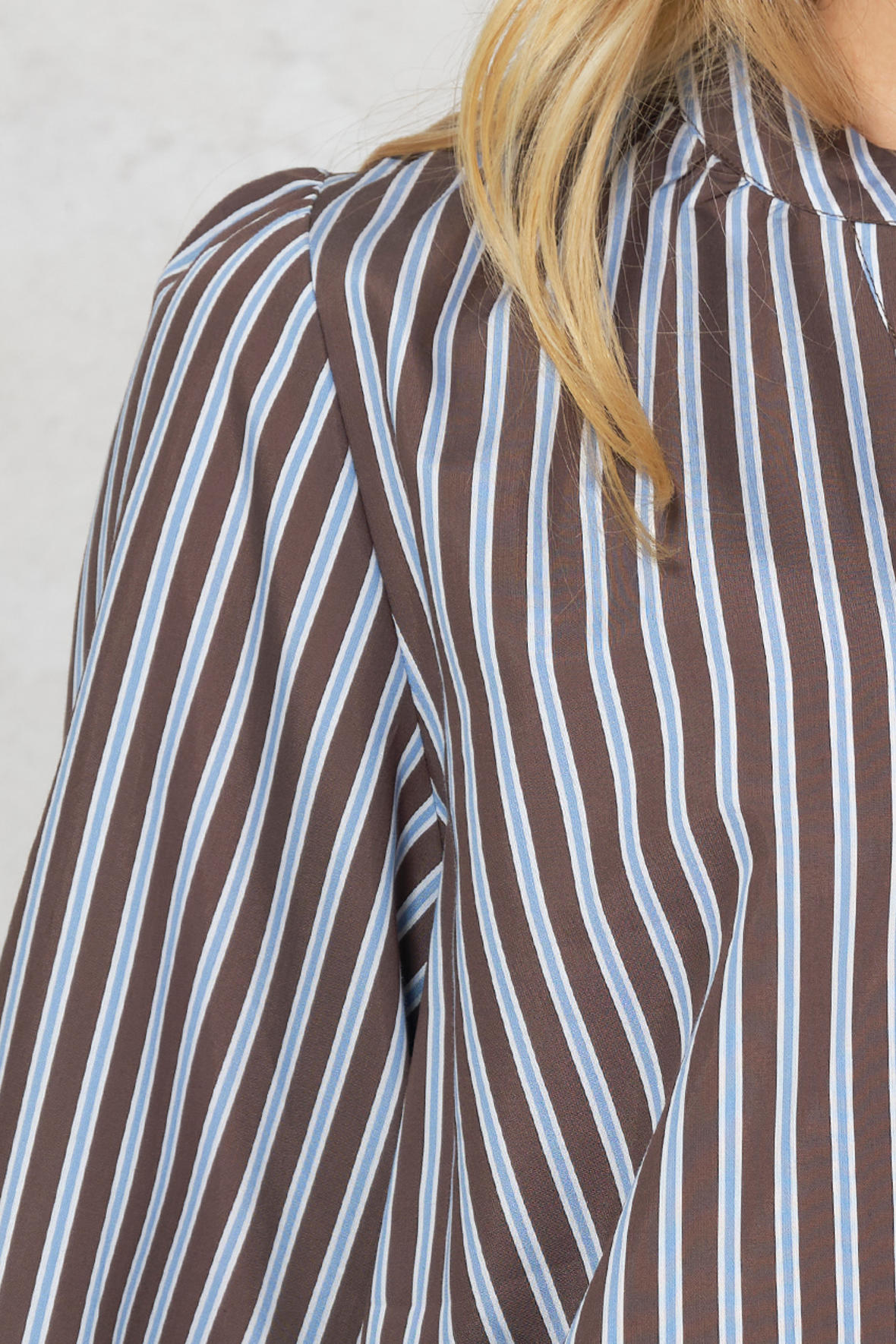 Harriet Blouse er en feminin og tidløs bluse med et elegant stribet mønster i blå og brunlige nuancer, jeg synes virkelig den er så smuk. Blusen har en let og luftig kvalitet der er fastvævet, som falder flot på kroppen og har en behagelig pasform. Den er designet med en diskret åben V-udskæring og gennemknapning foran med små, gyldne knapper, der tilfører et eksklusivt touch. De lange ærmer har let vidde og elastik ved håndleddene, mens fine lægdetaljer ved overarmen skaber ekstra form og elegance. Ryggen er helt glat. Den er til den store side, så tænker du skal det være medium eller large, går du med medium.