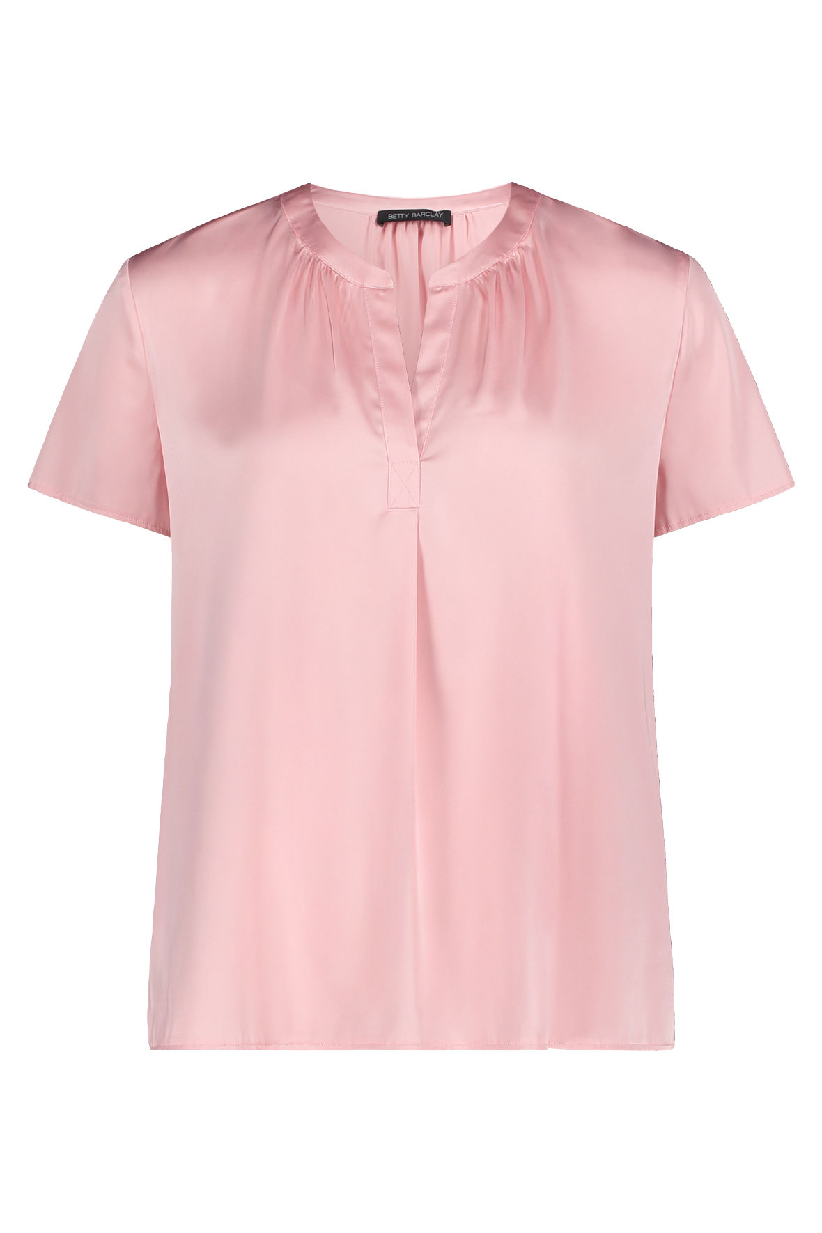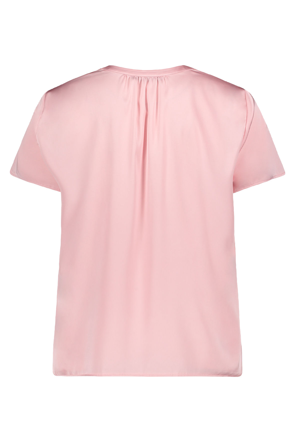 Satinbluse med flot skindende overflade, med smukke detaljer som små rynker ved kraven der i kombination med åben V-stolpe med læg i bunden giver et smukt billede af dig som person. Enkel og elegant med et løst snit. Lang kravekanten bagtil har den også lidt rynk. Pasformen er løs med ekstra vidde ved barmen. Vi savnede billeder af den på model, men kan klare dem i den ligeså skønne mint.