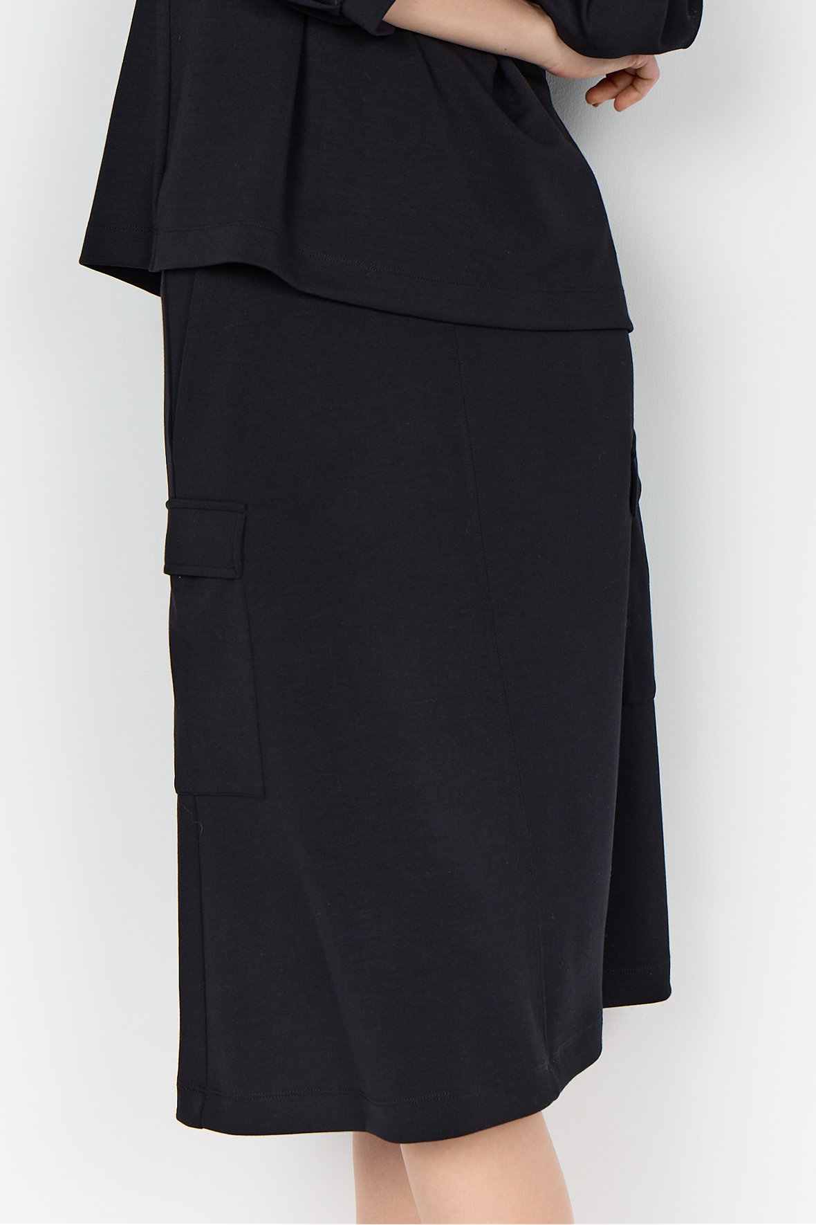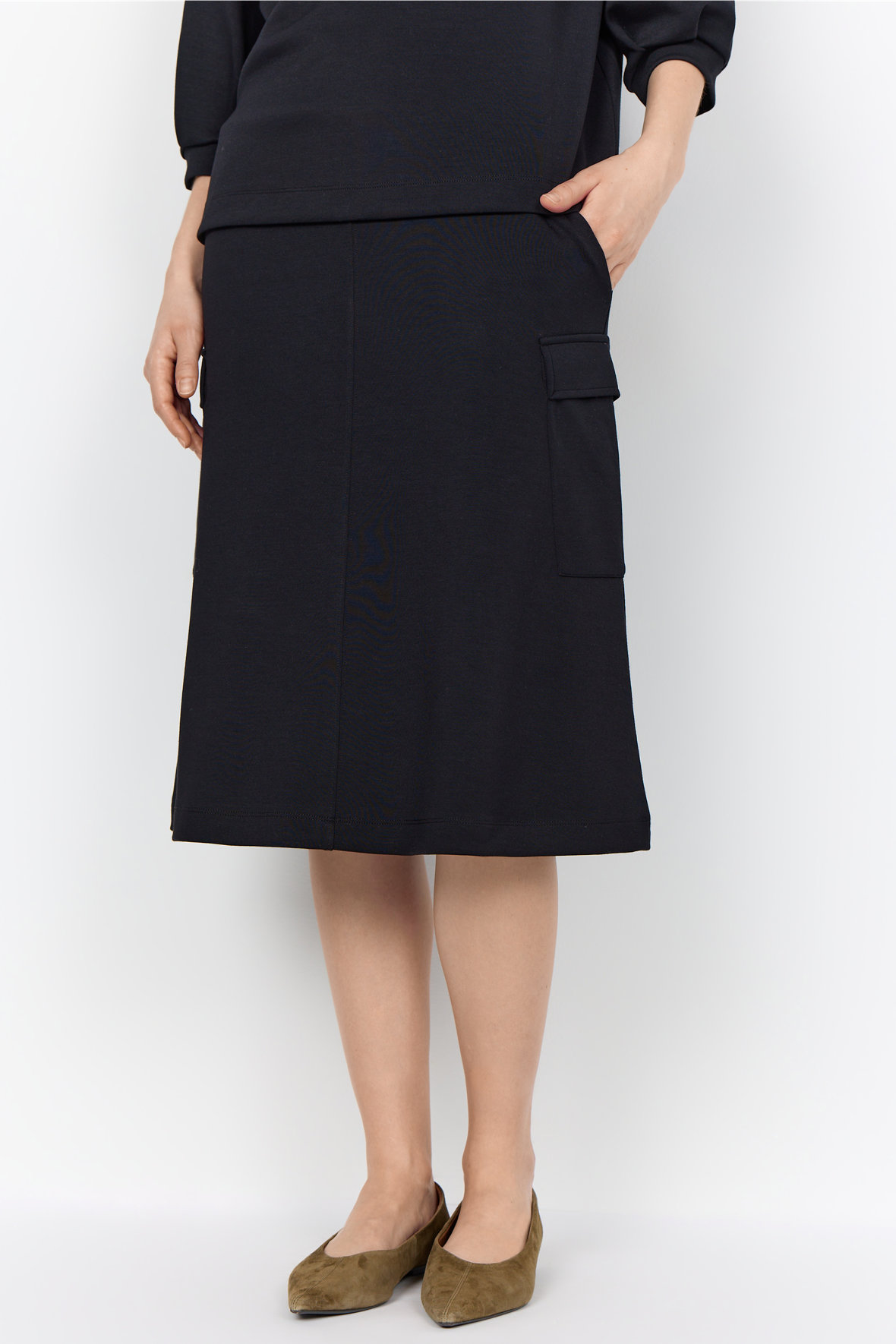Wa-Sabina 96 er en nederdel fremstillet af modal, polyester og 4 % elastan, du kender den måske i forvejen bedst som sweat kvaliteten. Den har en elastisk linning med funktionelle cargo-lommer i siden på lår og højere oppe skrålommer. Nederdel er lavet med en glat finish. Der er Sæt den sammen med en enkel top og sneakers for et afslappet, sporty look. Den har længde til under knæ. Den krøller ikke og er åndbar.